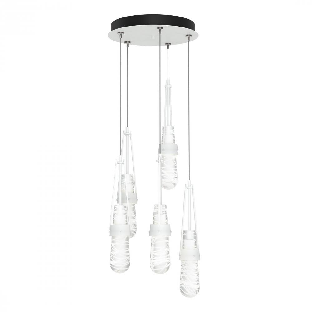 The popular Link Collection continues to grow with the Link 5-Light Blown Glass Pendant. This versatile, five-light multi-port is as easily at home as a focal piece creating cascading light, as it is as a unique and dramatic semi-flush, thanks to the enormous adjustability of the Link’s cable heights. Beautiful, artisanally blown glass (clear bubble or white threaded) from our Vermont neighbor, adorns this hanging fixture.