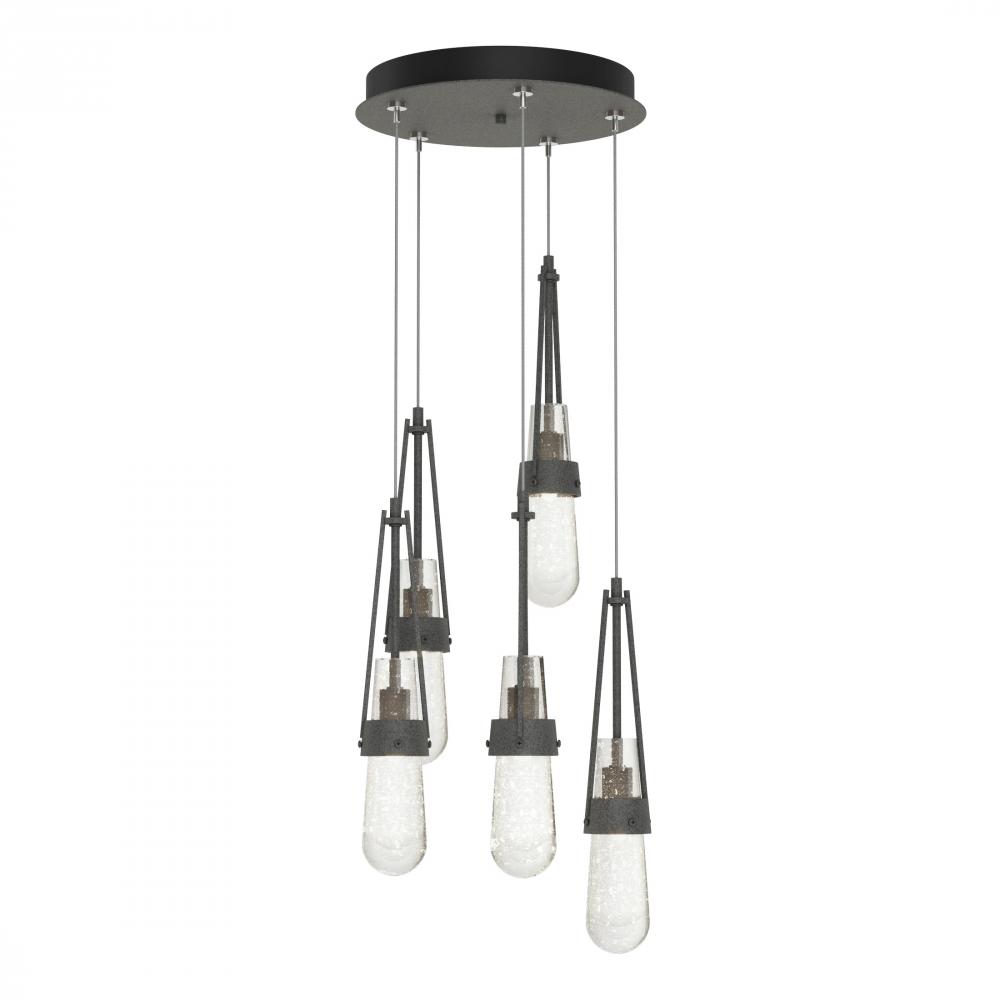 The popular Link Collection continues to grow with the Link 5-Light Blown Glass Pendant. This versatile, five-light multi-port is as easily at home as a focal piece creating cascading light, as it is as a unique and dramatic semi-flush, thanks to the enormous adjustability of the Link’s cable heights. Beautiful, artisanally blown glass (clear bubble or white threaded) from our Vermont neighbor, adorns this hanging fixture.