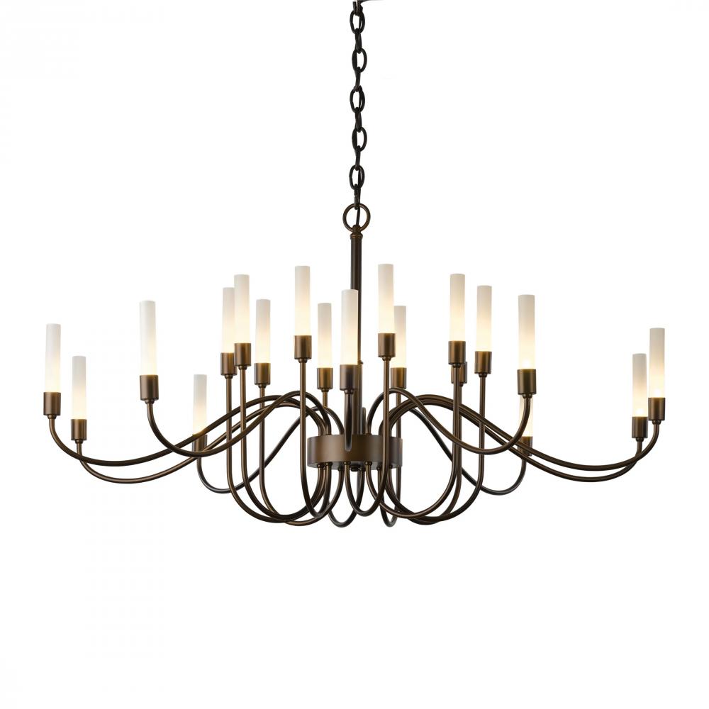 Finely formed steel arms curve upward to support slender glasses of this large chandelier. Inspired by the tulip buds found in the town of Lisse in Holland, but crafted by artisans here at our Vermont forge, each piece is unique.
