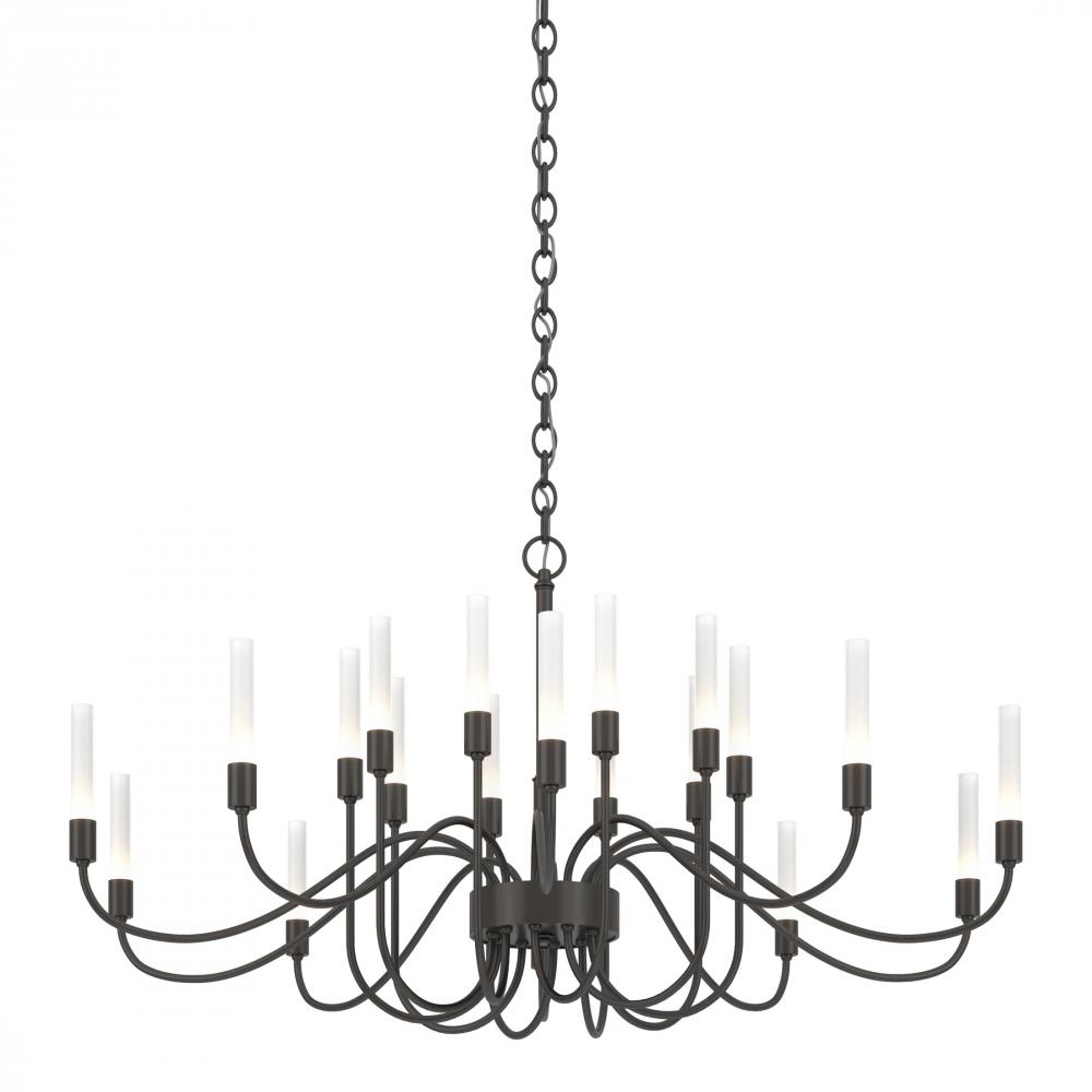 Finely formed steel arms curve upward to support slender glasses of this large chandelier. Inspired by the tulip buds found in the town of Lisse in Holland, but crafted by artisans here at our Vermont forge, each piece is unique.