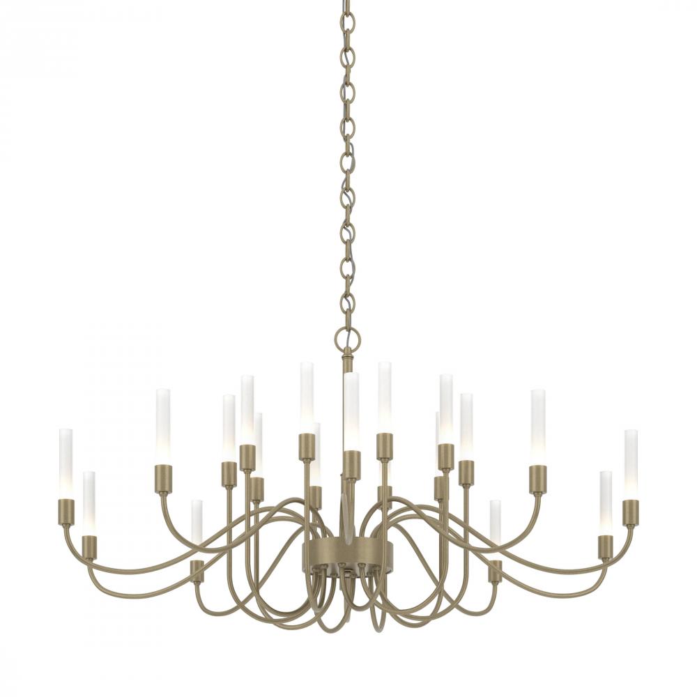 Finely formed steel arms curve upward to support slender glasses of this large chandelier. Inspired by the tulip buds found in the town of Lisse in Holland, but crafted by artisans here at our Vermont forge, each piece is unique.