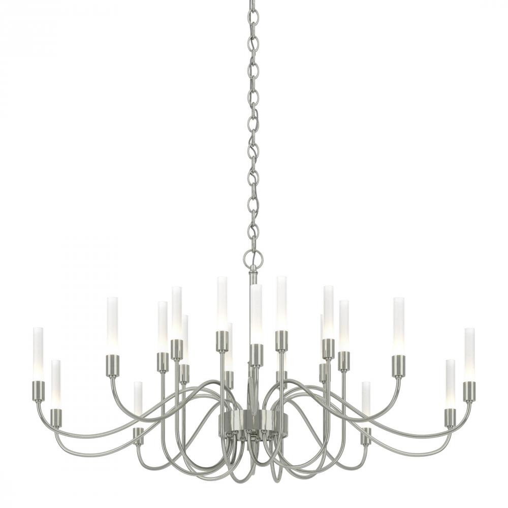 Finely formed steel arms curve upward to support slender glasses of this large chandelier. Inspired by the tulip buds found in the town of Lisse in Holland, but crafted by artisans here at our Vermont forge, each piece is unique.