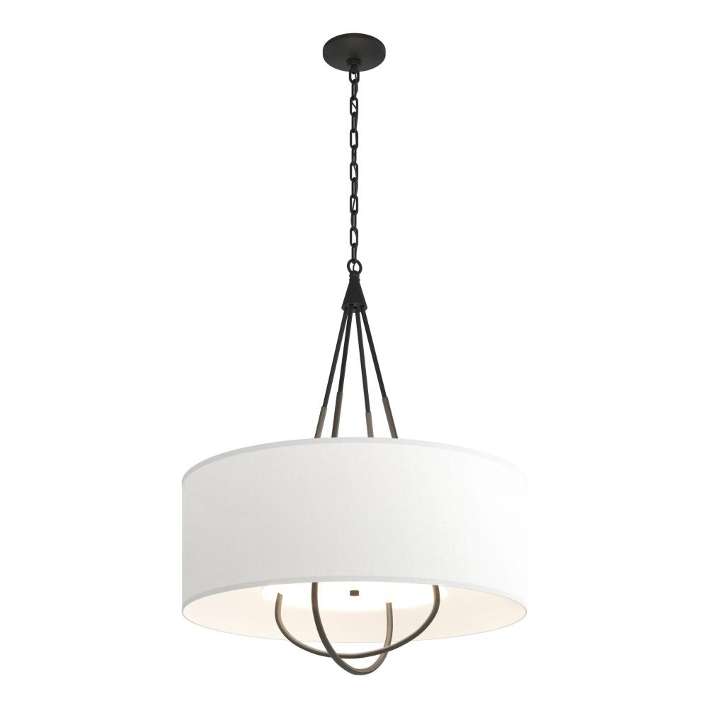 Refinement of materials and purity of line combine to make the Loop Pendant an elegant and versatile choice. Explore the many options this fixture offers—select a base finish for the canopy and chain, an accent finish for the intercrossed loops, and multiple outer shade color choices. A white inner shade gracefully diffuses the light while providing a tailored detail.