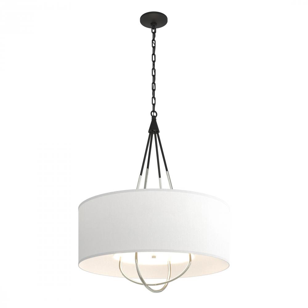 Refinement of materials and purity of line combine to make the Loop Pendant an elegant and versatile choice. Explore the many options this fixture offers—select a base finish for the canopy and chain, an accent finish for the intercrossed loops, and multiple outer shade color choices. A white inner shade gracefully diffuses the light while providing a tailored detail.