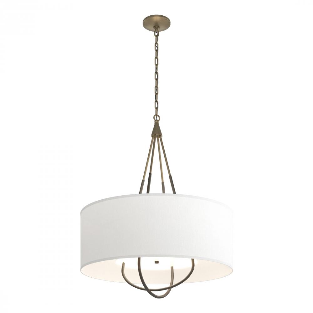 Refinement of materials and purity of line combine to make the Loop Pendant an elegant and versatile choice. Explore the many options this fixture offers—select a base finish for the canopy and chain, an accent finish for the intercrossed loops, and multiple outer shade color choices. A white inner shade gracefully diffuses the light while providing a tailored detail.