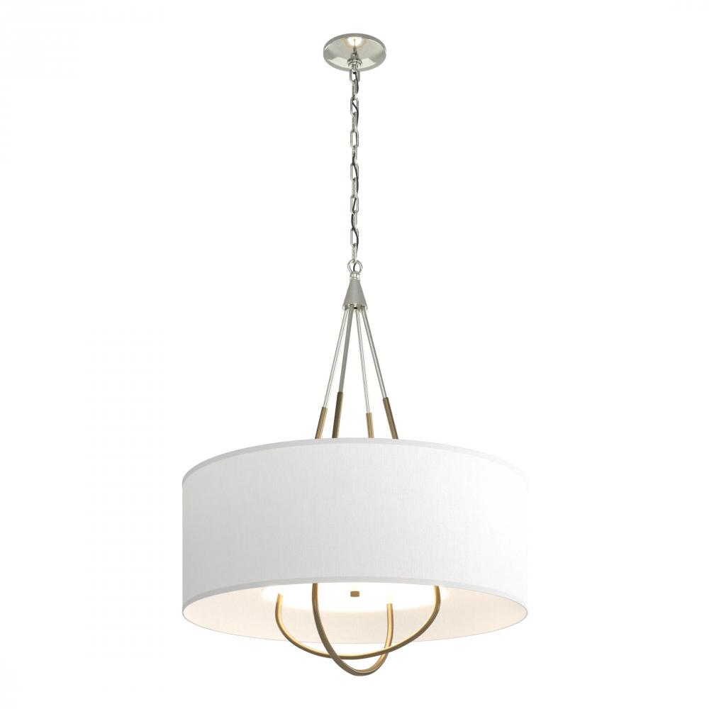 Refinement of materials and purity of line combine to make the Loop Pendant an elegant and versatile choice. Explore the many options this fixture offers—select a base finish for the canopy and chain, an accent finish for the intercrossed loops, and multiple outer shade color choices. A white inner shade gracefully diffuses the light while providing a tailored detail.