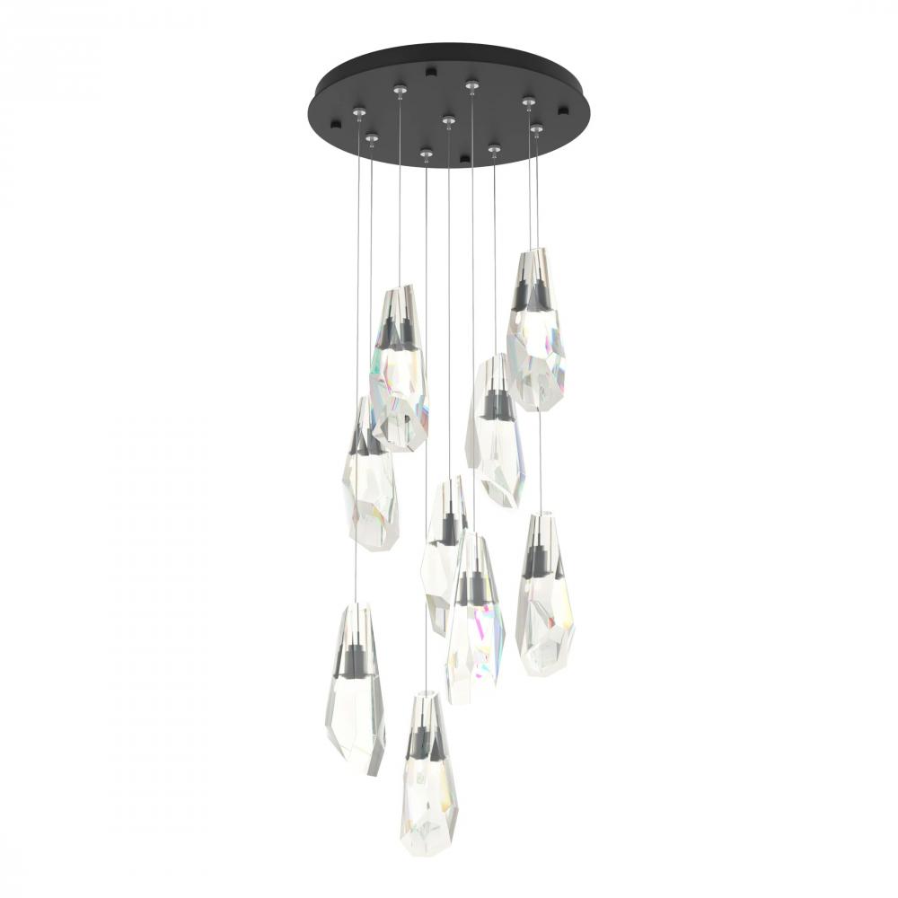 Large hand-cut and polished crystal shades adorn this stunning multi-port chandelier. With 9 Luma crystals, this elegant piece offers the ability to customize the length of each to suit the space.
