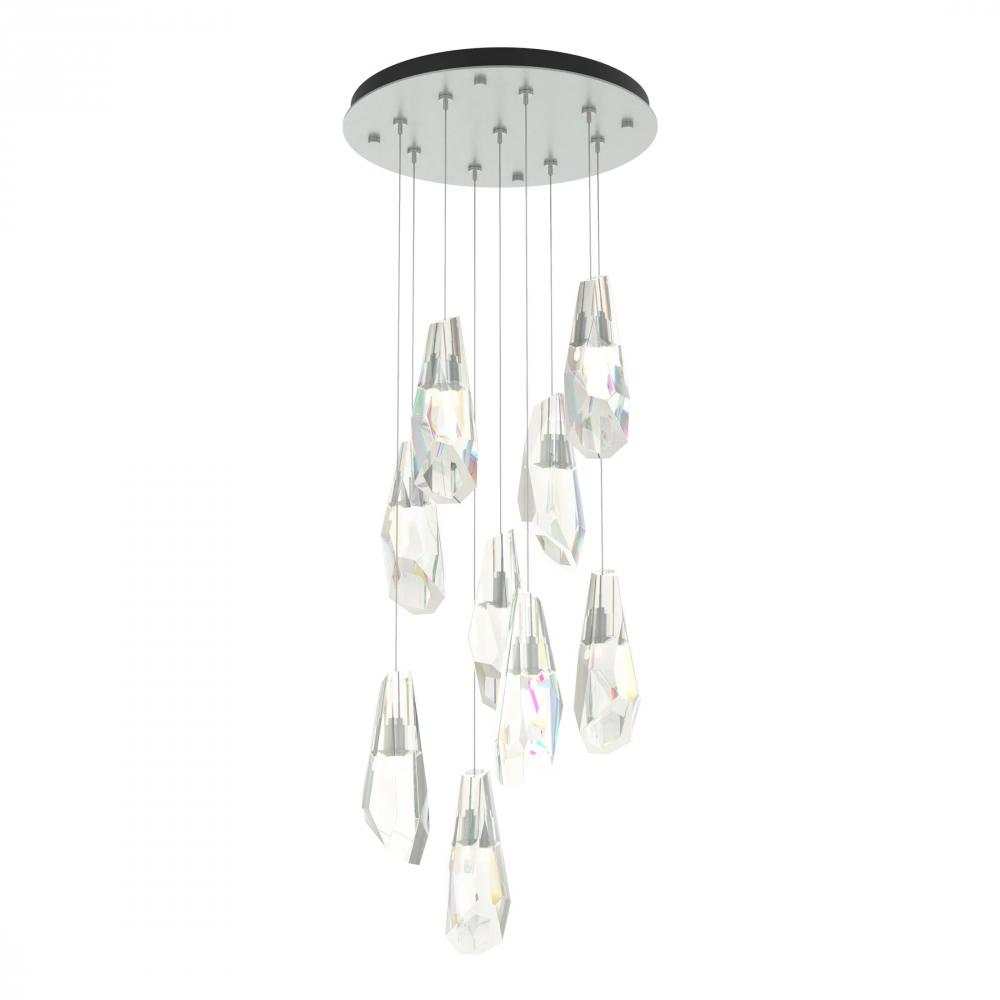Large hand-cut and polished crystal shades adorn this stunning multi-port chandelier. With 9 Luma crystals, this elegant piece offers the ability to customize the length of each to suit the space.