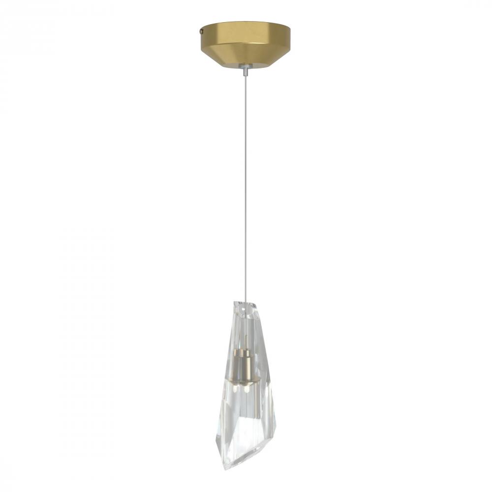 A thick, lustrous jewel of faceted crystal encases the light source within it. The Luma mini pendant is eye-catching opulence that offers a sophisticated beauty even when unlit.