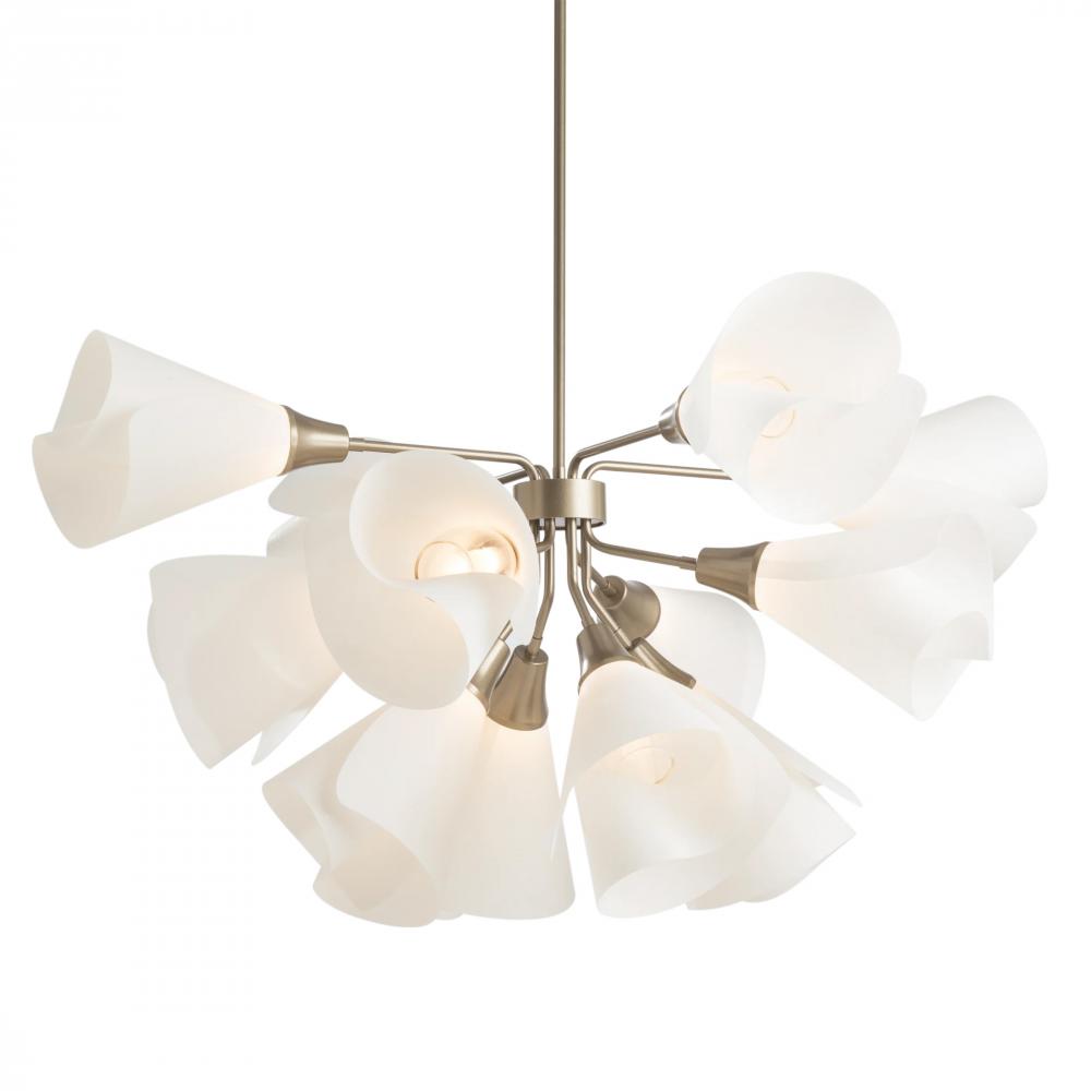 Like a bouquet of delicate blooms, the new 12-Light Mobius Pendant is light and airy, featuring spun frost "petals" for shades. The "stem" is available in a choice of nine finishes, and in three lengths. This elegant pendant creates a burst of botanical beauty in any space.