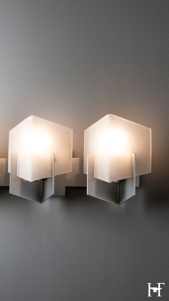 With a very geometric, contemporary look, the Prisma 3-Light Bath Sconce combines beautiful slumped white art glass with angular metal pieces for a great visual effect. Both the glass and the metal feature right angles, and are positioned at opposing faces creating a stunning and elegant look.