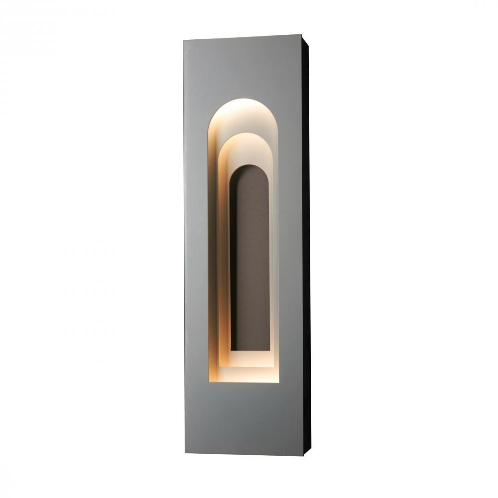 Inspired by a visit to the Grundtvigs Church in Copenhagen, the Procession Arch Small Outdoor Sconce takes the idea of spatial progression, utilizing forced perspective to achieve its timeless aesthetic. The original Gothic arch was transformed into a Roman arch in this aluminum wall-mounted sconce. Designed for the outdoors, yet beautiful enough for the indoors, as well.