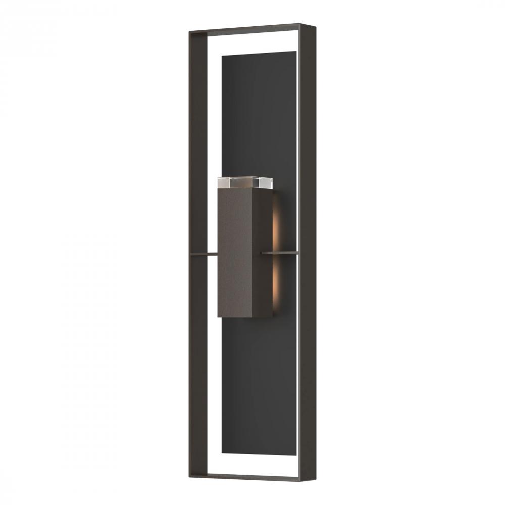 The Shadow Box Extra Tall Outdoor Sconce stands nearly 4 ft high (45”) greeting guests in a big way! This large scale outdoor wall-mounted fixture has an aluminum frame and backplate and is offered with a two-tone finish from among our robust Coastal Outdoor Finish options. The Shadow Box’s modern geometry and aluminum construction that is both lightweight and durable, make it perfect for a variety of exterior settings.
