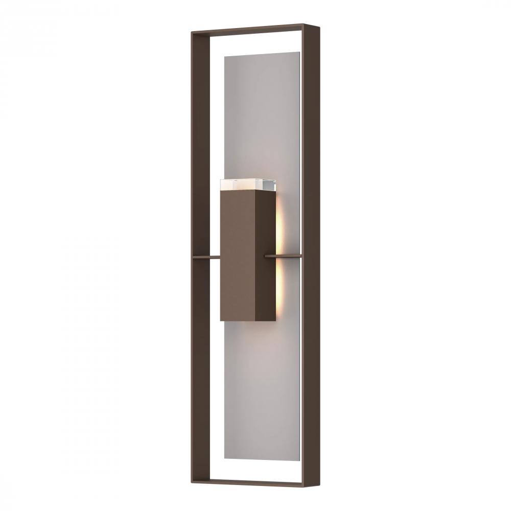 The Shadow Box Extra Tall Outdoor Sconce stands nearly 4 ft high (45”) greeting guests in a big way! This large scale outdoor wall-mounted fixture has an aluminum frame and backplate and is offered with a two-tone finish from among our robust Coastal Outdoor Finish options. The Shadow Box’s modern geometry and aluminum construction that is both lightweight and durable, make it perfect for a variety of exterior settings.