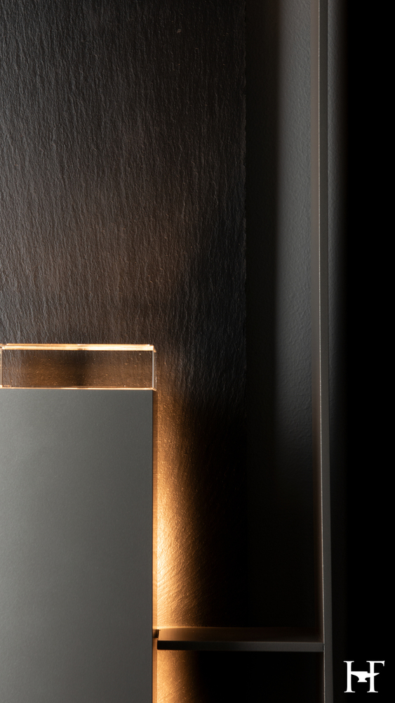 Talk about a great first impression. This extra tall, nearly 4 ft high (45”) exterior wall sconce features natural Vermont black slate for a natural backdrop. The night sky constellations can only be truly appreciated when upward light is reduced dramatically, and this Dark Sky Friendly version does just that with a light inhibitor that promotes a downlight. This large scale outdoor wall-mounted fixture has an aluminum frame and is offered with any of our robust Coastal Outdoor Finishes, all AAMA 2604-rated.
