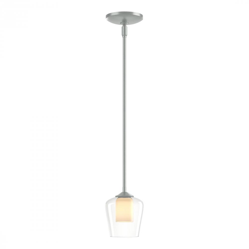 Our Simple Mini Pendant delivers exactly as described. A straight metal rod joins to curved glass with a second glass within. Perfect for complementing a design without stealing the show. American-made by Vermont artisans.