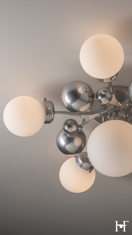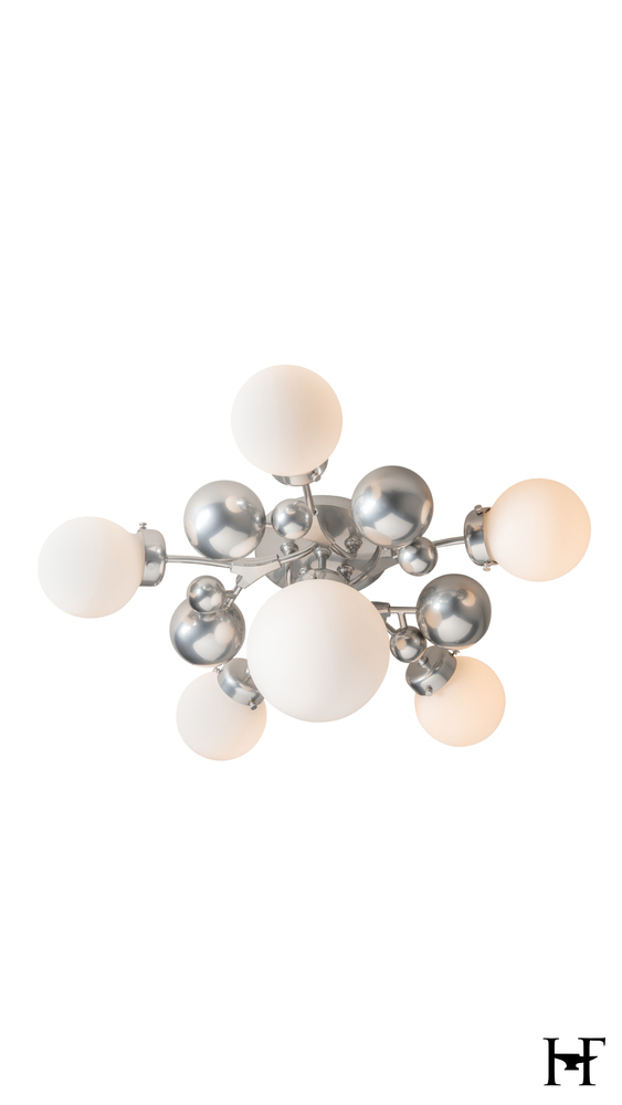 With a clear reference to a cluster of berries, this Sprig 6-Light Semi-Flush by David Kitts brings both style and light to its space. With a combination of steel and glass "berries", the Sprig demands attention. Choose from opal, clear waterglass or translucent opaline shades, and 11 standard interior finishes.