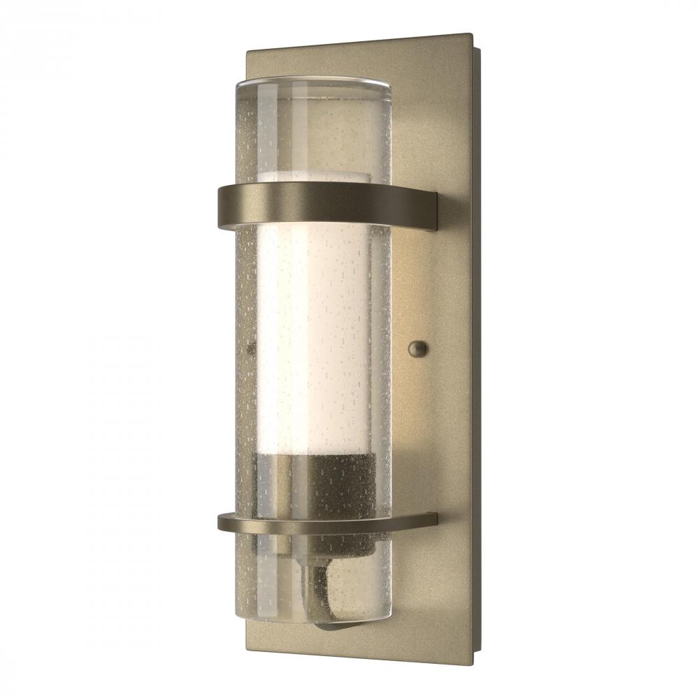 ADA Compliant, this Torch Indoor Sconce gives a contemporary look, with its double-glass, opal glass within a clear seeded glass cylinder. Crafted in steel and available in any of Hubbardton Forge's standard finishes.