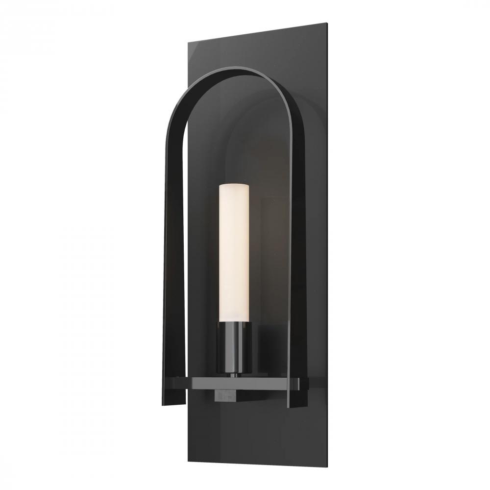 A beautiful, two-tone option wall-mounted fixture, the Triomphe 1-Light Sconce is perfectly suited to a variety of interior settings. Chic and sophisticated, yet with clean lines, this wall sconce shows off its Craftsman tenon details and modern frosted glass tube element. The elegant arch can be created with a contrasting finish for dramatic effect.