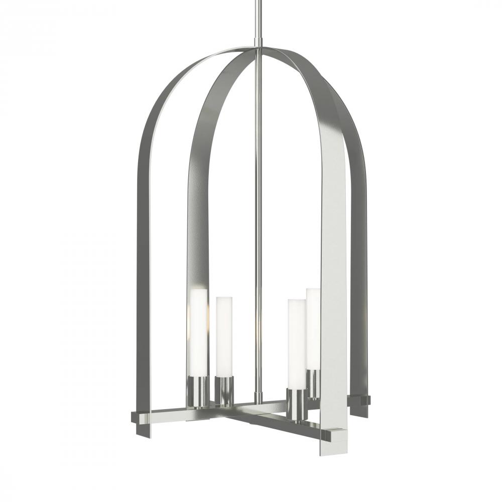 A timeless design of intersecting arches that create an open, airy feel, the Triomphe 4-Light Pendant is a handmade piece of modern craftsmanship with a transitional design for any style. Our adjustable Multi-Stem system allows for easy height adjustment, and the modern, frosted glass tubes give off a warm glow.