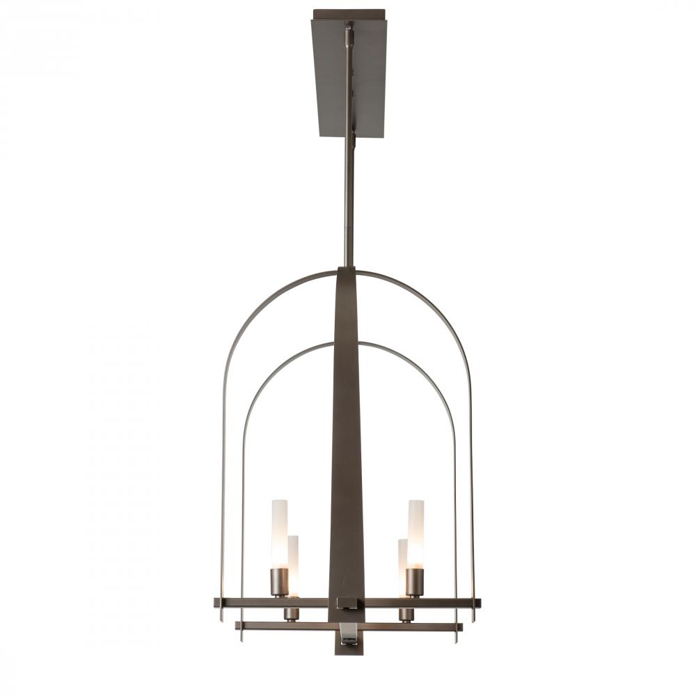 The Triomphe 9-Light Linear Pendant is a geometric, linear design features intersecting arches with a distinctive shape. The Triomphe takes its inspiration from traditional cage chandeliers, but with contemporary design touches that give it an open feel. Handcrafted of steel, it features two sets of intersecting arches, with frosted glass tubes fitted to the steel traverses with Craftsman tenon details. A Multi-Stem system provides great height adjustability.