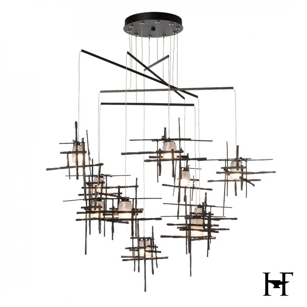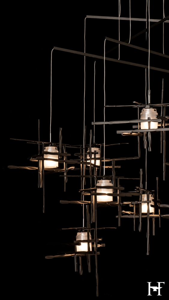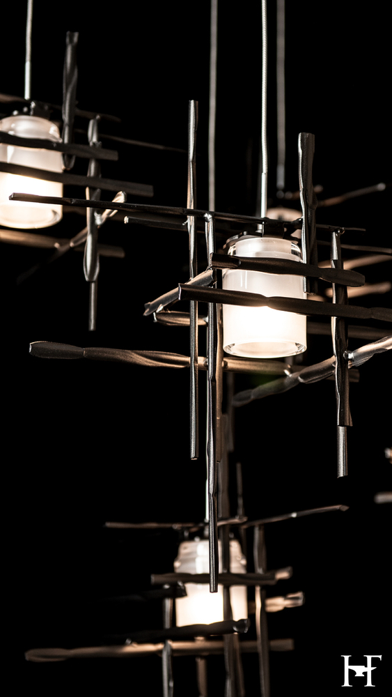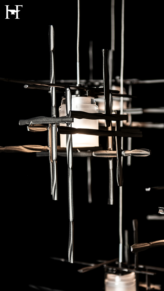 With ten frosted glass elements on a mobile platform, the Tura can bring light to a broad area. Delicate metal tubes guide each cable, creating a balancing act of light that is highly-adjustable, offering a wide degree of customization to suit its space.
