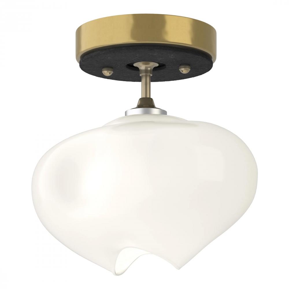 The Ume Semi-Flush features a single, exquisite glass shade that has the distinction of being glossy on the outside, yet frosted on the inside, creating a unique appearance, combined with its botanical shape. The Ume frosted glass, like its namesake Japanese plum blossom, has an elegant and sophisticated aesthetic and extends from the straight arm of this semi-flush mount. Available in all standard finishes and with a choice of Ume frosted glass as well as grey or clear thumbprint glass shades.