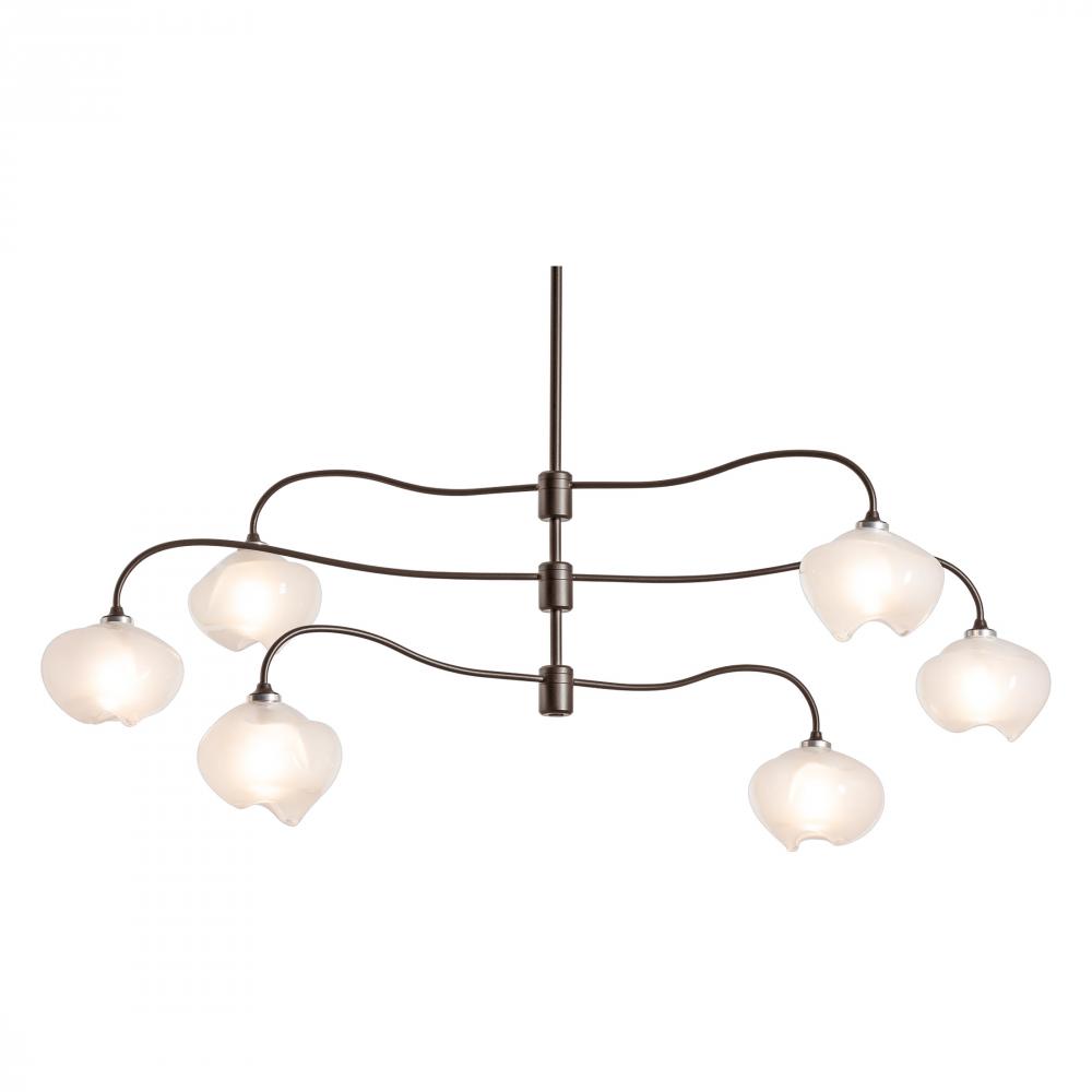 The Ume 6-Light Large Pendant offers a substantial span with its 3 fixed tiers of light. Offered with an option of new glass entries for 2021, the Ume brings a simple elegance to any space. An exquisite glass option, frosted internally, yet with a glossy exterior, is shaped like a blossoming plum, and is exclusively available with the Ume Pendants. "Thumbprint" glass shades in clear or cool grey options are also available.