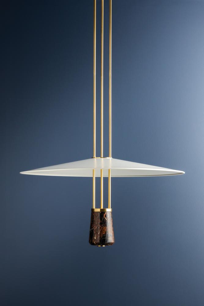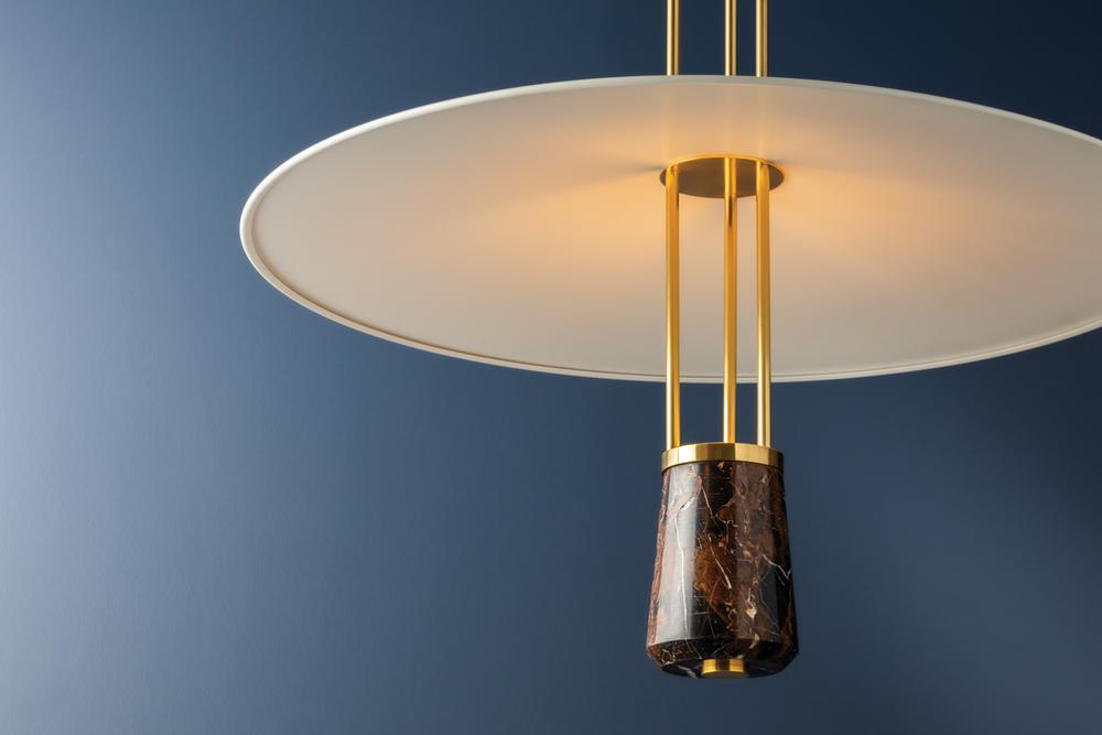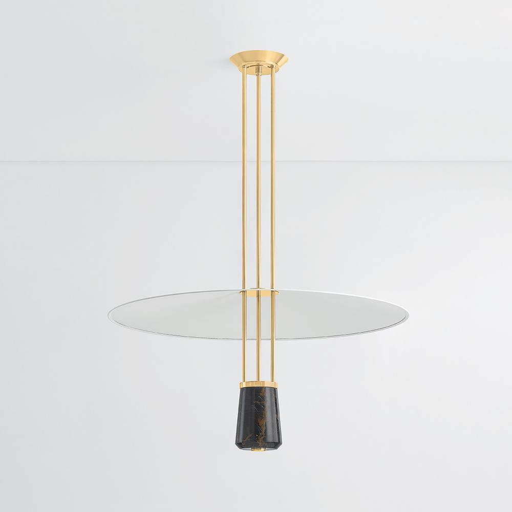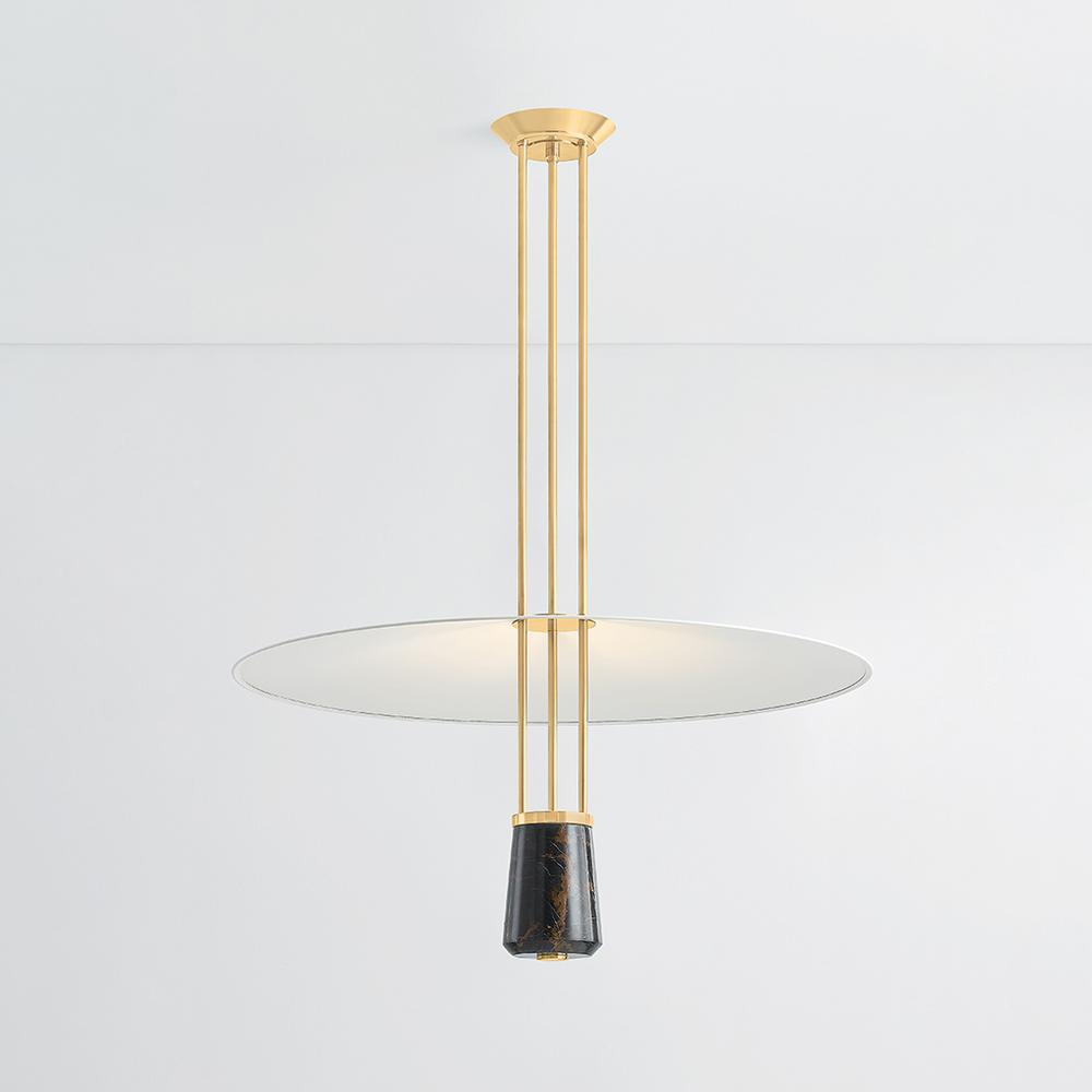 Inspired by the graceful wingspan of a crane, Barnegat has a serene silhouette with mid-century design appeal. The wide, slender shade is balanced by the visual weight of the dark St. Laurent marble at the bottom of the fixture. to complement the other distinctive materials, the metalwork is finished in Aged Brass. Make a poetic statement in living or dining spaces with this timeless pendant light. Due to the one-of-a-kind nature of the medium, exact colors and patterns may vary slightly from the image shown.