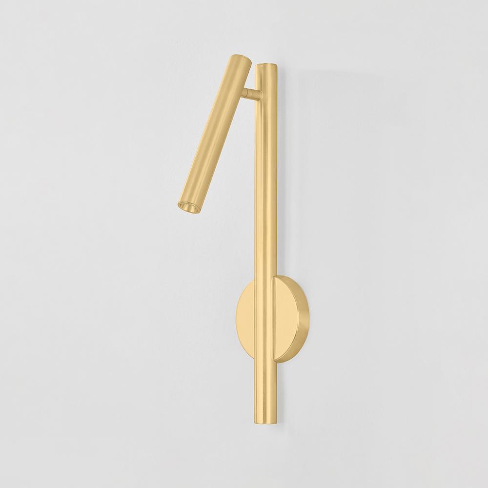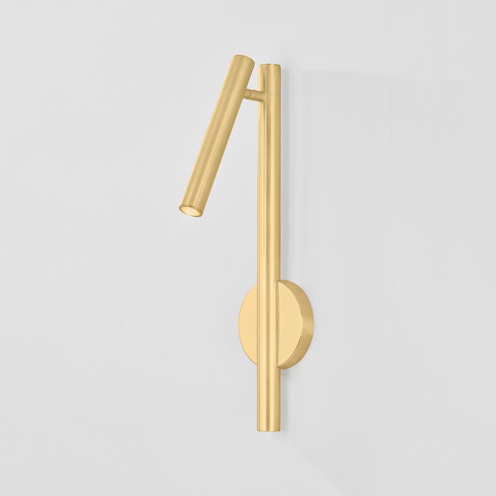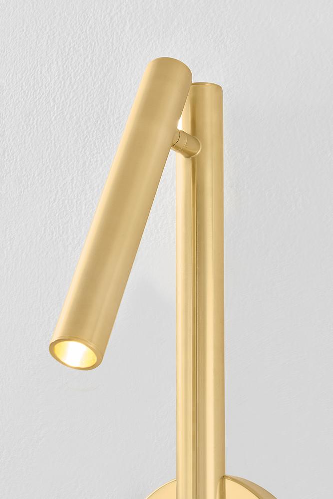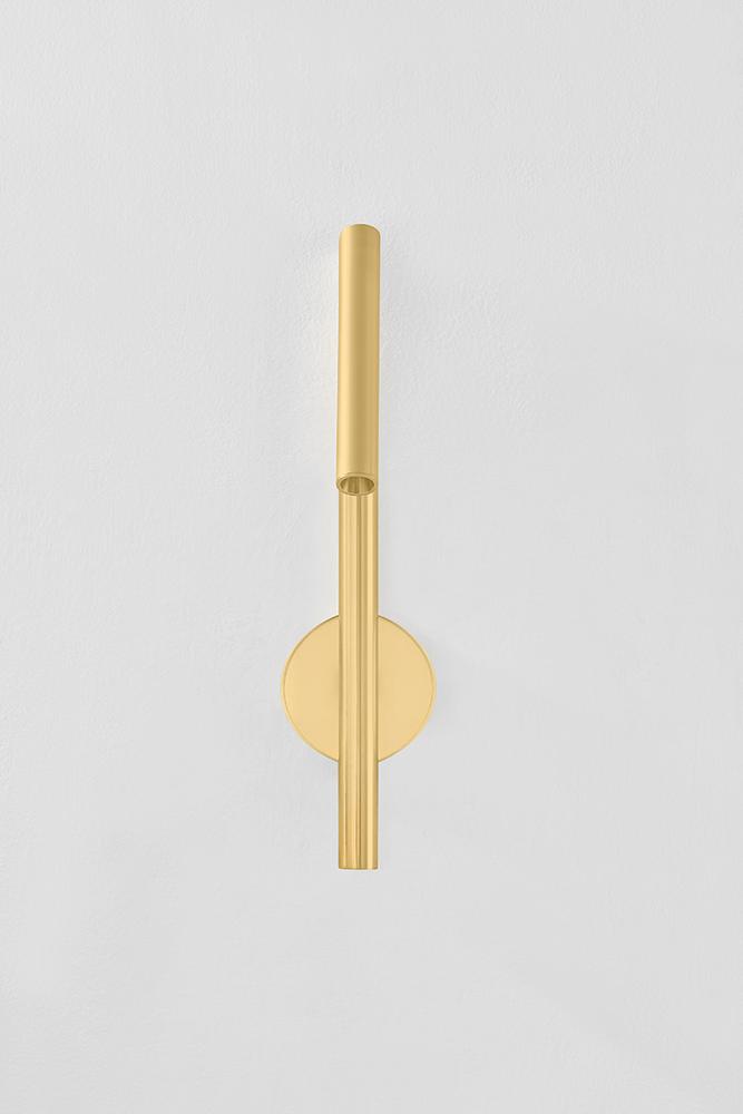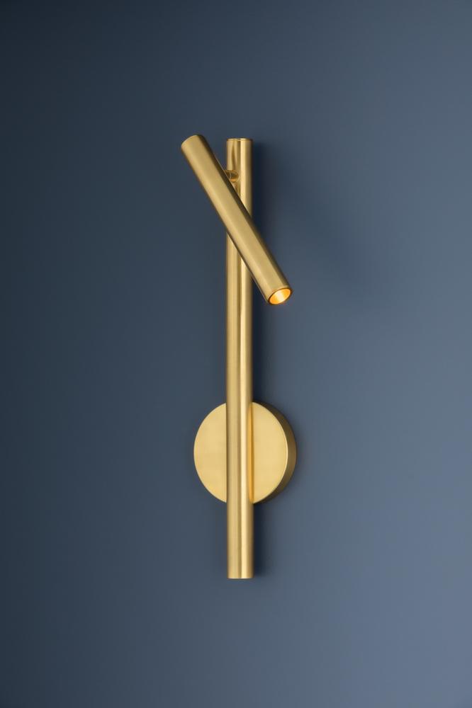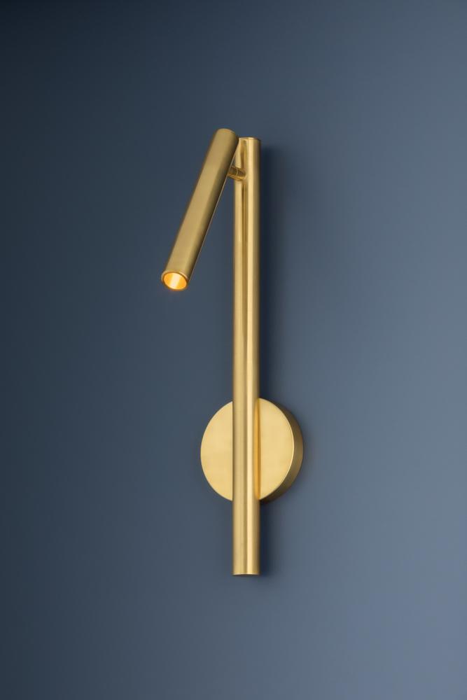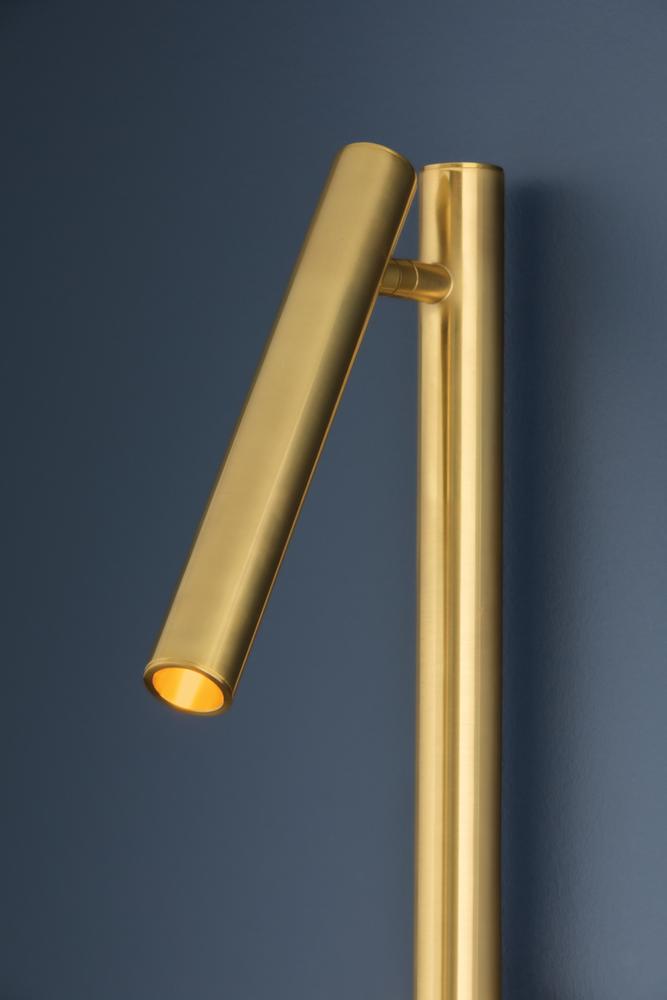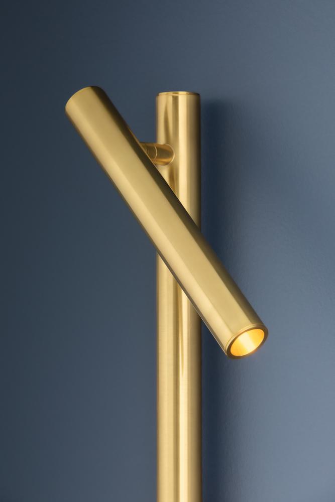 Incorporating CSL’s innovative ‘Whisper’ technology, Circleville cuts a sleek figure in Aged Brass. While it might read as industrial, the elongated tube forms lean towards modernist aesthetics. The articulating shade allows precise control to create a powerful spotlight where needed. Available as a sconce and floor lamp.