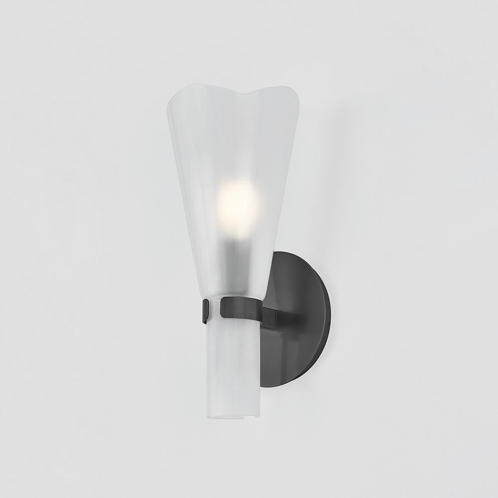 Rendered in clear etched glass, the abstracted floral shade of Pine Island creates a soft, romantic lighting moment. While the top edge of the fixture softly undulates, the center of the glass is grooved to fit securely into the metal clasp. The minimalist frame allows the focus to stay on the delicate beauty of the shade.
