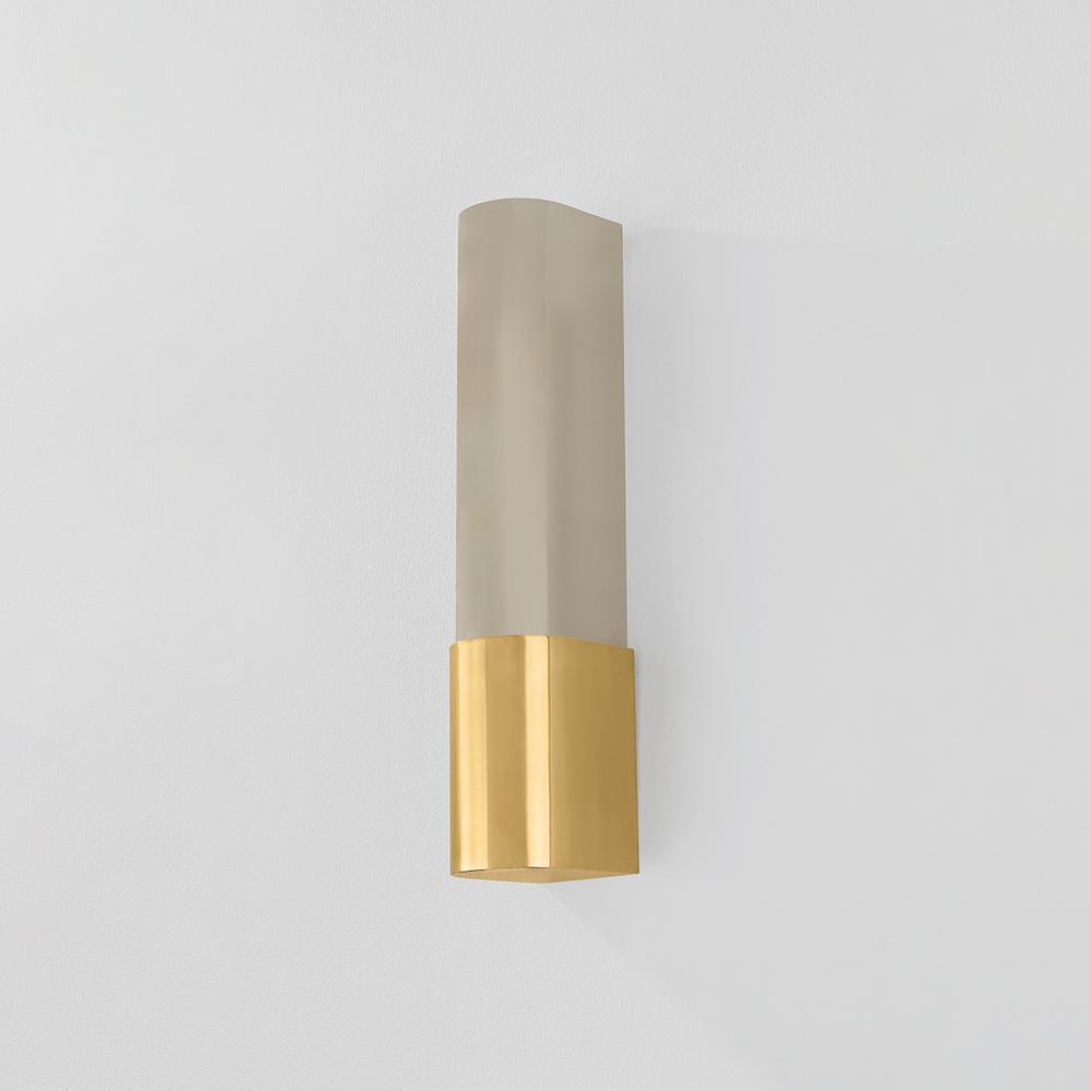 Melding bronze glass with sleek metalwork, the Somersville family includes two timeless, versatile sconces. Suited for a variety of small spaces, the bullnose shape of these fixtures creates a monolithic look. The light bronze glass is etched inside, creating a softly patinated appearance that conceals the light source. When illuminated, the Aged Brass finish of the metalwork glints off the glass shade.