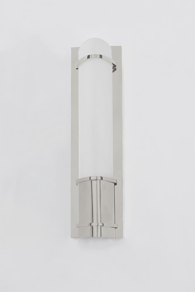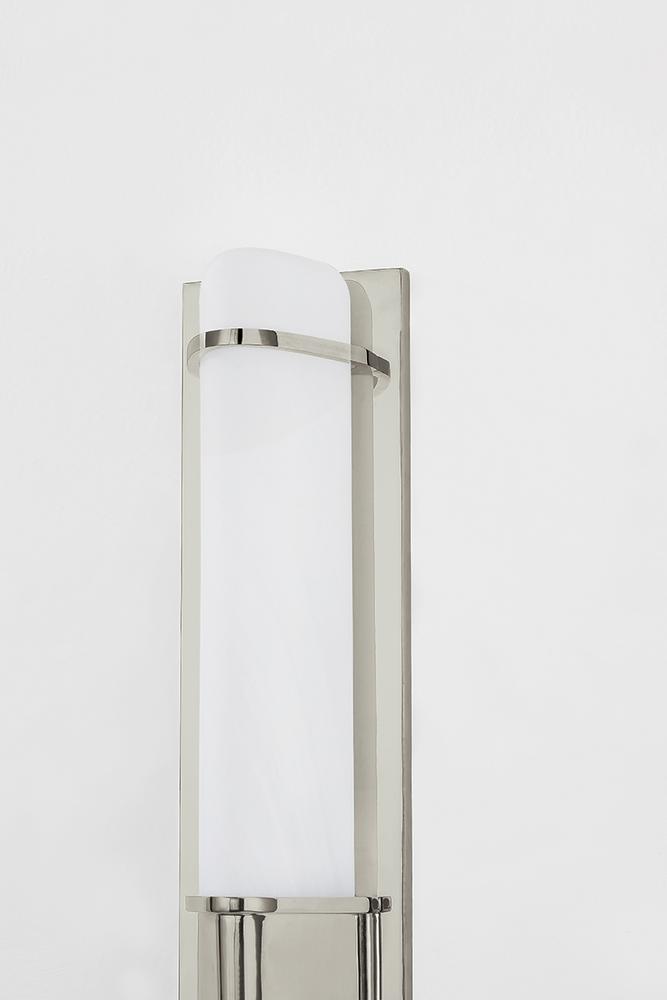 Pairing minimalist metalwork with matte cloud glass, Tottenville is a highly versatile sconce for a powder room or bath area. The glass shades feature a unique triangular profile that gives this fixture both slimness and its distinctly modern feel. Choose from a single or dual light sconce with an Aged Brass or Polished Nickel finish.