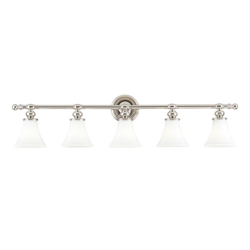 Bells of mouth-blown opal glass resound with timeless style in our Weston bath family. Cast oblong-shaped socket bases suggest a variety of styles into which the fixture could fit. Capping the ends of the bath bar with ball finials complements the circular shape of the backplate.