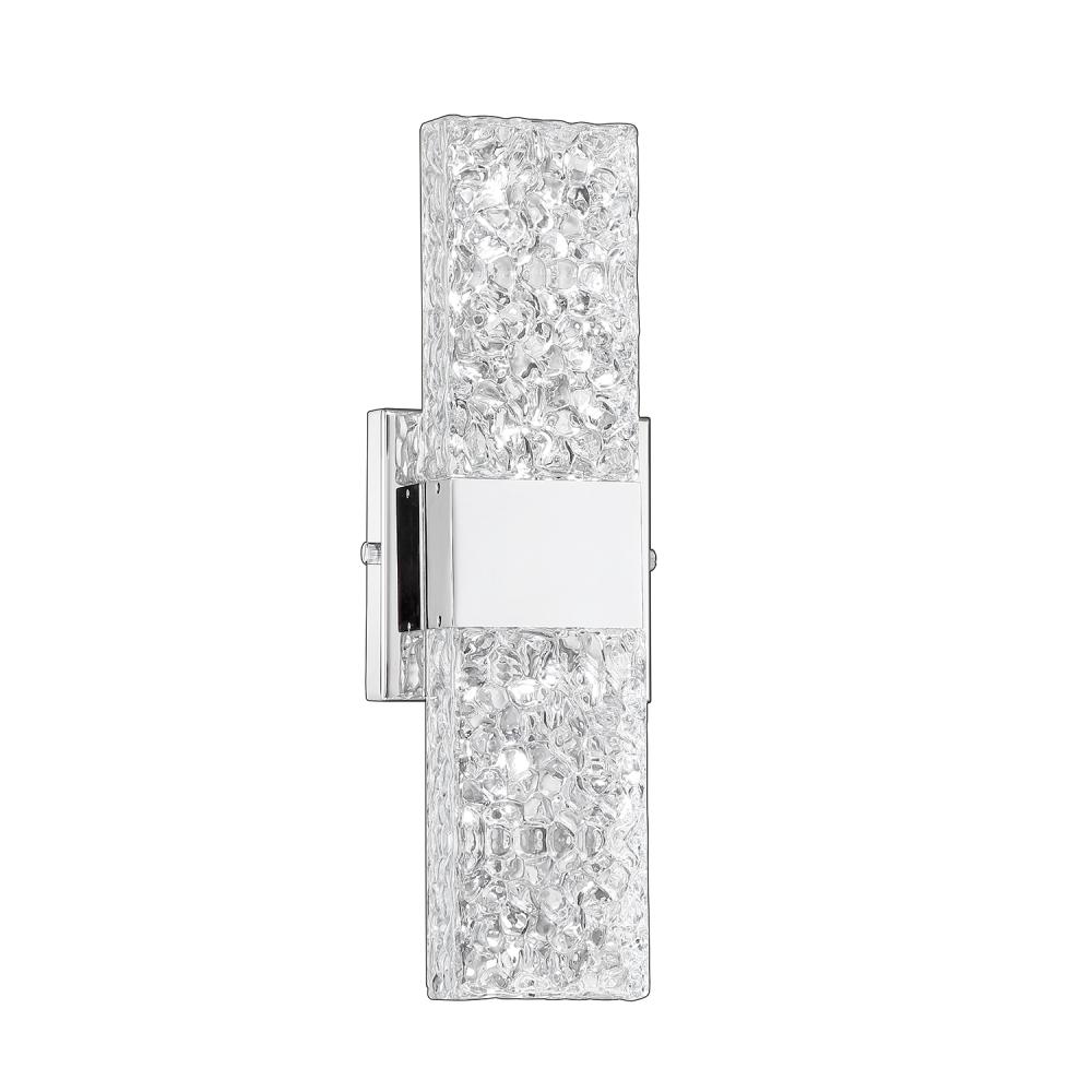 GLACIER 2-Light LED Bath Sconce & Vanity Light in a Chrome finish featuring Icelandic Rock Glass