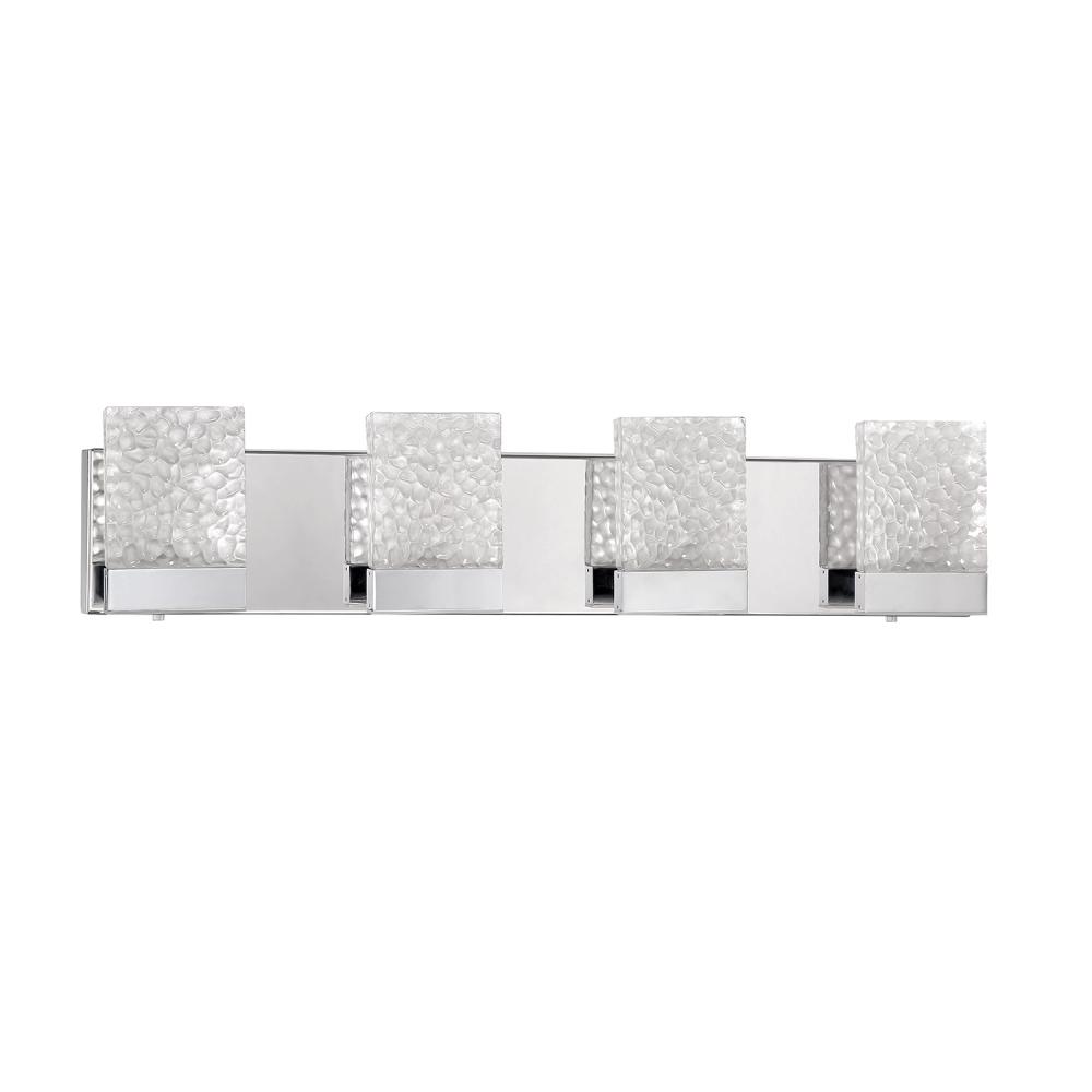 ASTRON 4-Light LED Bath & Vanity Light in a Chrome finish featuring Frosted Icelandic Rock Glass