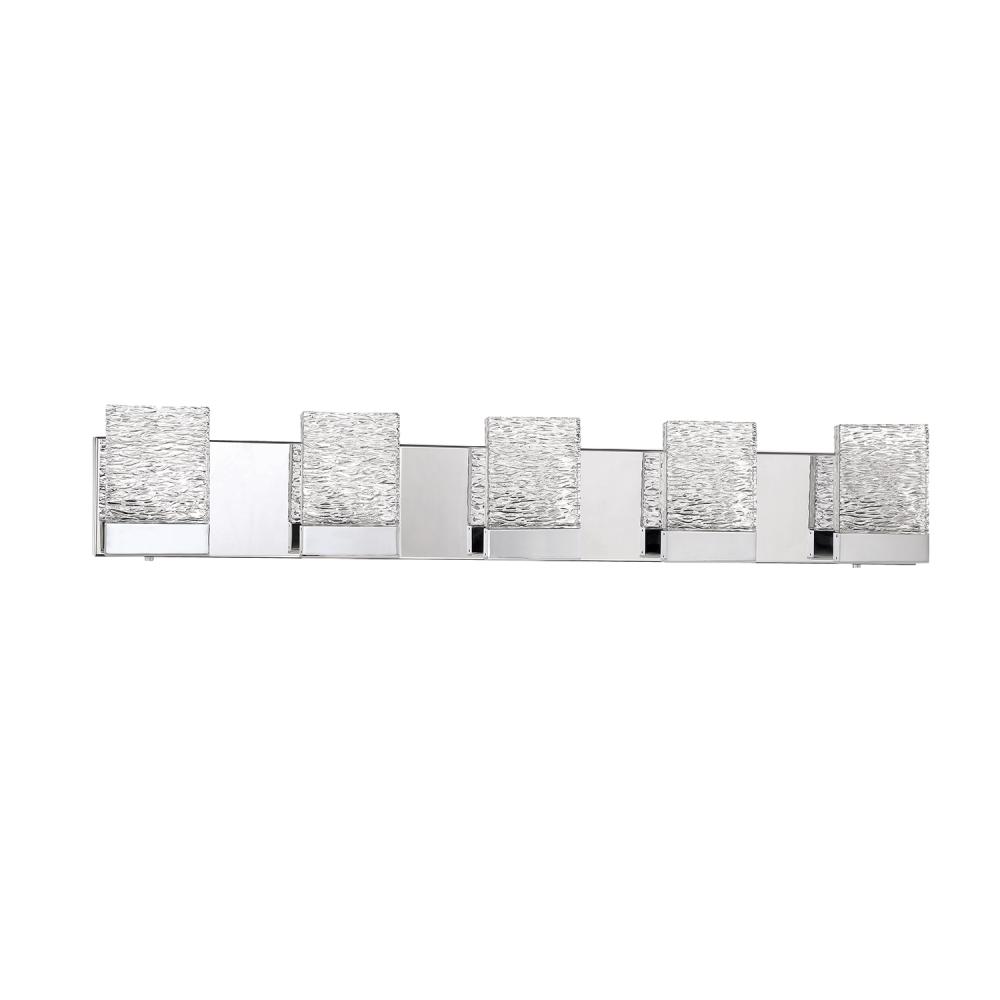 ASTRON 5-Light LED Bath & Vanity Light in a Chrome finish featuring Rippled Ice Glass