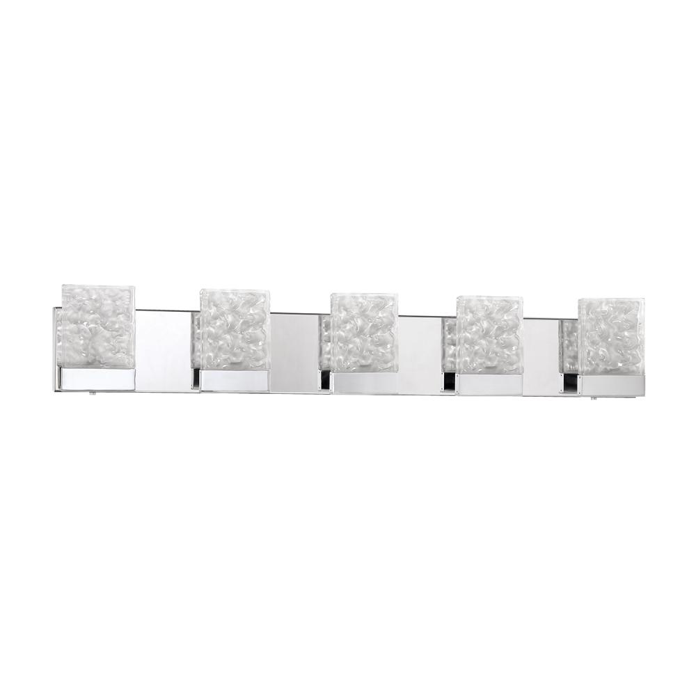 ASTRON 5-Light LED Bath & Vanity Light in a Chrome featuring Frosted Fossilized Ice Glass