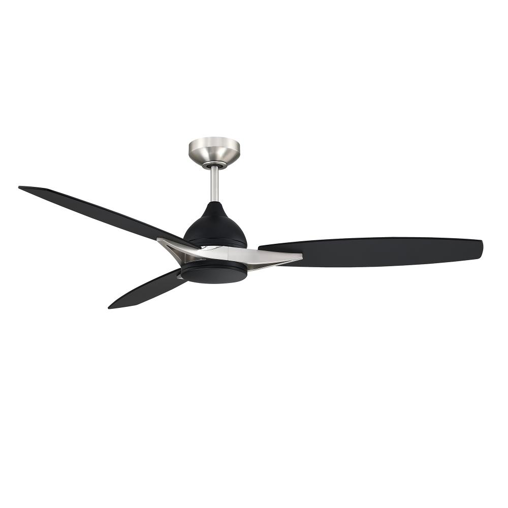 NOVUM 56 in. 3 Blade DC Motor Ceiling Fan with Adjustable Color LED Light Kit and Remote Control in a Black & Satin Nickel finish with Black blades. The included Full-function Remote Control provides 6 Speeds, CCT (LED Color) Adjustability, LED Dimmer, 2/4/8 Hour Timer to shut Fan off Automatically, and a Variable Wind feature which modulates Fan Speed to simulate a Natural Breeze.
