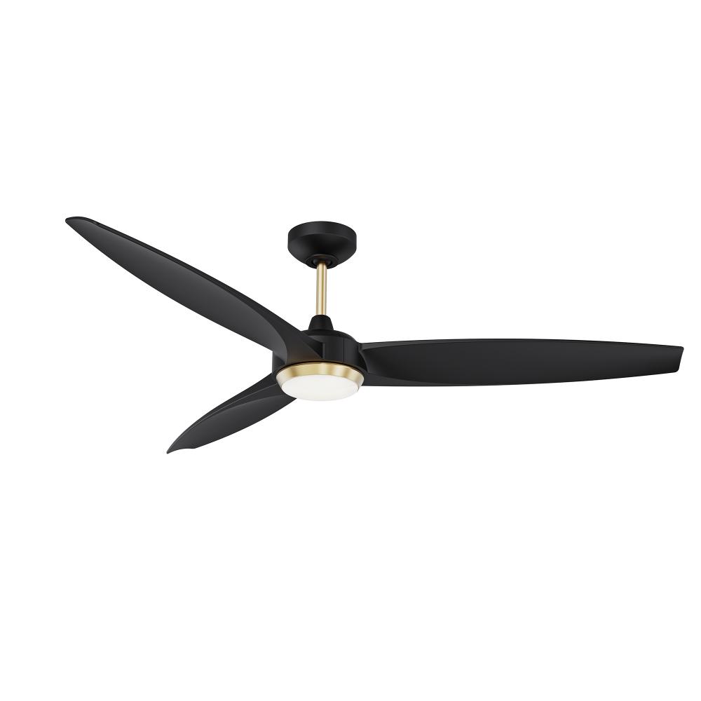 STELTRA 56 in. 3 Blade DC Motor Ceiling Fan with LED Light Kit and Remote Control in a Matte Black & Oilcan Brass finish with Black blades