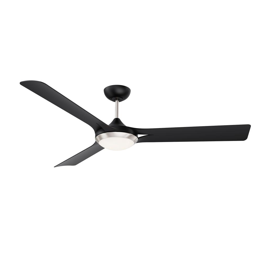 ORI 60 in. 3 Blade DC Motor Ceiling Fan with LED Light Kit and Remote Control in a Matte Black & Satin Nickel finish with Black blades