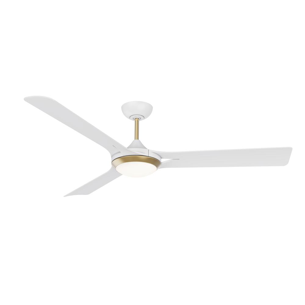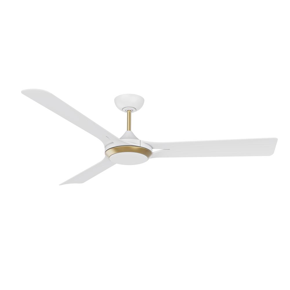 ORI 60 in. 3 Blade DC Motor Ceiling Fan with LED Light Kit and Remote Control in a Matte White & Oilcan Brass finish with White blades