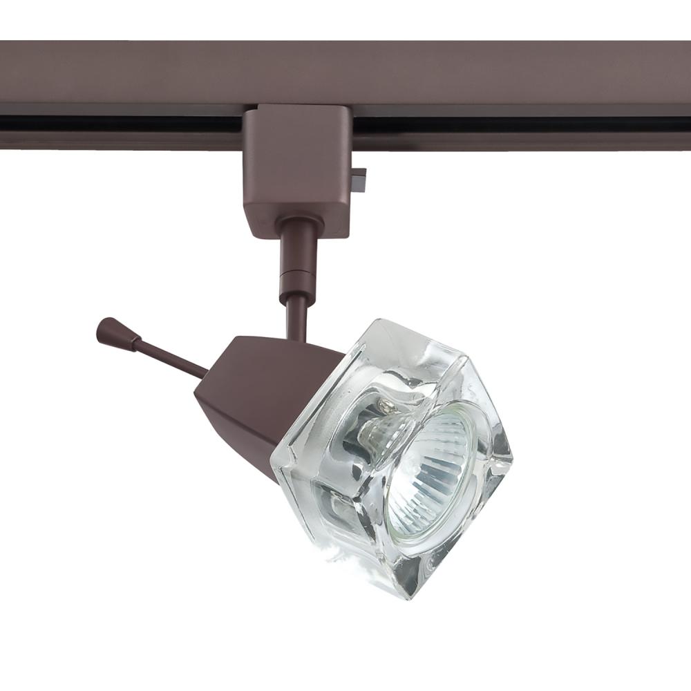 Line voltage track head cylinder in an Oil Rubbed Bronze finish with Cubic Clear Glass shade for use with GU-10 base lamps