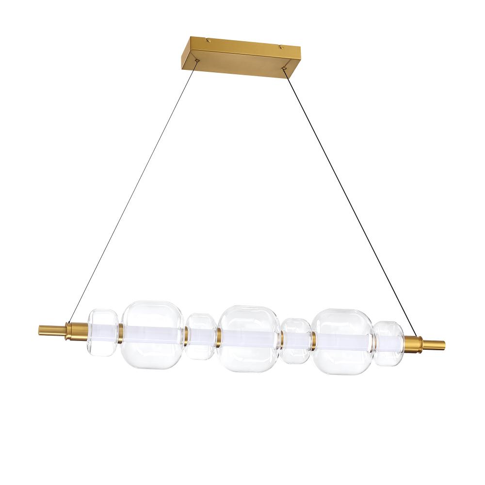 TRAVARE horizontal LED Bar Pendant in a Brass finish with clear Borosilicate Glass shades