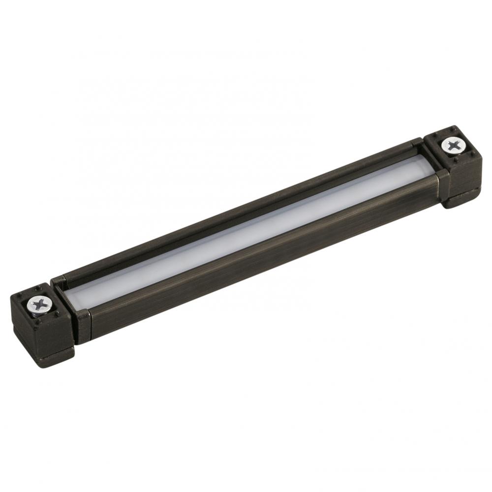 The 12V LED Hardscape light is an integrated, fully sealed LED fixture with a 270° pivot rotation from a mounting bracket which allows you to place the light precisely where it's needed. The 6" length option fits most design applications with a 2700K color temperature in a Centennial Brass (CBR) finish. Custom optics ensure smooth, uniform light distribution virtually eliminating any hotspots or glare. Integrated with a 4kV surge protection to defend against power surges and irregularities.