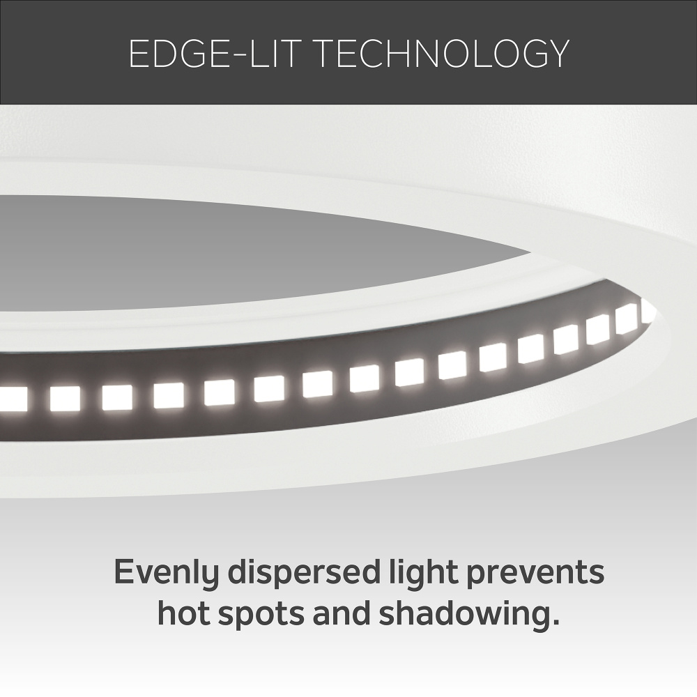 A modernized solution to your ambient ceiling lighting needs, the Ara 5.50" round downlight offers a sleek-to-ceiling profile that elevates your space. Its edge-lit technology fills the diffuser with evenly dispersed light to prevent both hot spots and shadowing. Featuring an easy push-on, pull-off installation, and minimalistic shape, Ara is the perfect addition to modern-day environments.
