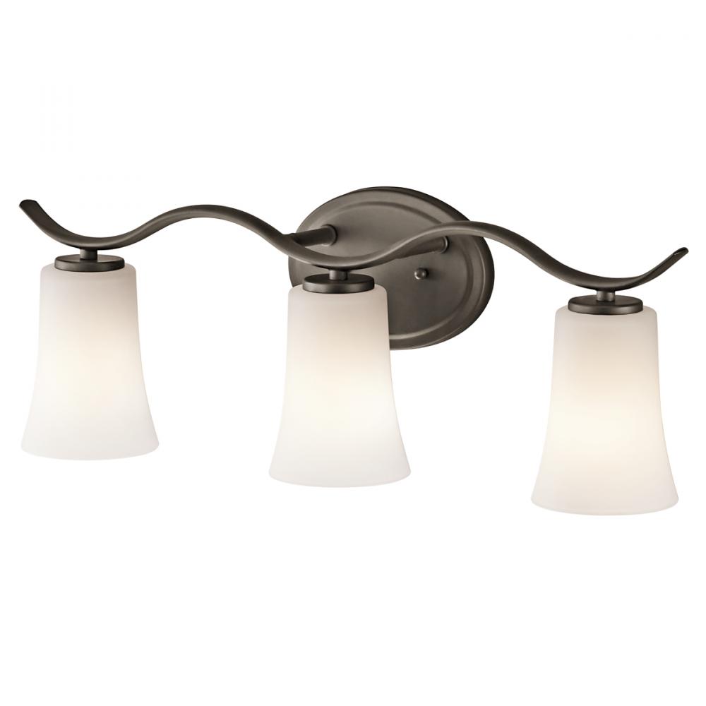The Armida™ 23" 3 light vanity light features a contemporary look with clean lines with its Olde Bronze® finish and satin etched white glass. The Armida is perfect in several aesthetic environments including transitional and modern.