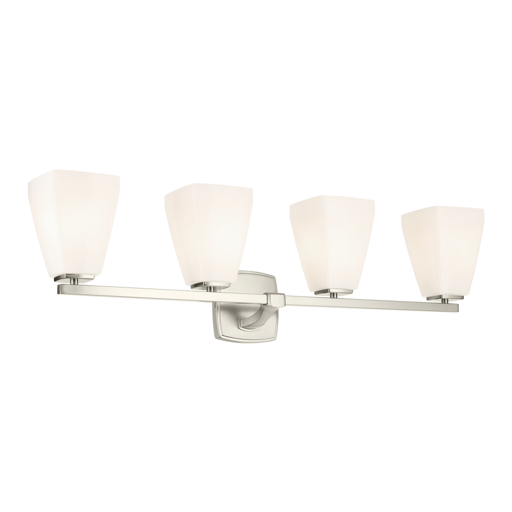 Featuring a clean luxe casted arm and white opal glass shade, the Marant 4-light vanity offers a full room glow. Designed with ascending contours and a robust frame, this collection is the perfect addition to any room. Whether working with a complementary fixture or holding its own, Marant is sure to stand out.