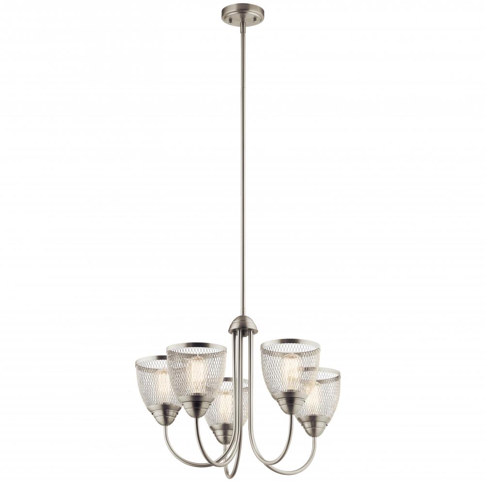 The Voclain™ 17.5" 5 light chandelier features a distinctive industrial look with its Brushed Nickel metal mesh shade. A perfect addition in several aesthetic environments including industrial, contemporary and transitional.