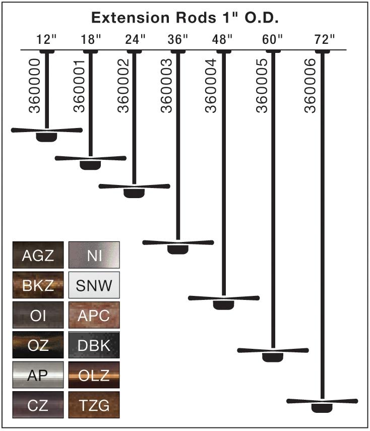 48 inch fan downrod (1 inch O.D.) suggested for 13 foot ceilings in Oiled Bronze